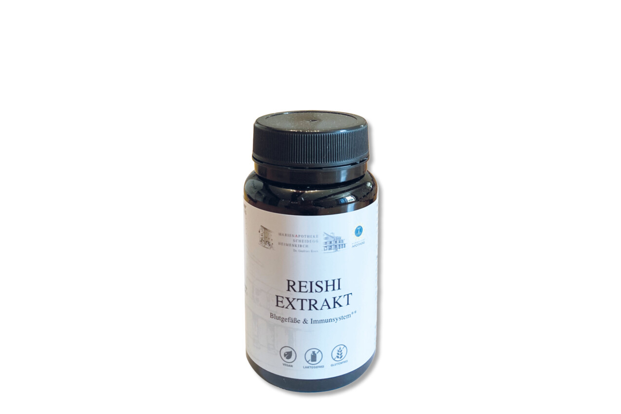 Reishi-Extrakt für die natürliche Unterstützung der Blutgefäße, der Kollagenbildung ,des Immunsystems und des Energiestoffwechsels.